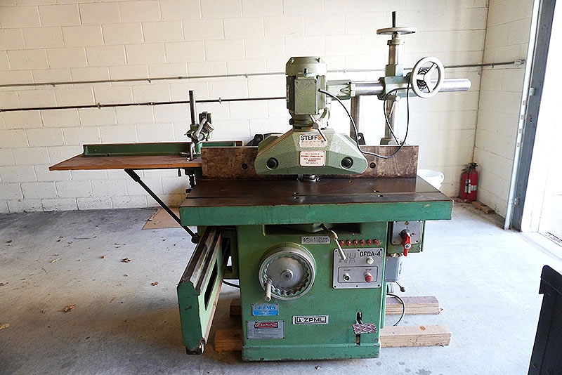 Polamco DFDA-4 Sliding Spindle Shaper with Steff 34 (3-Roll) Power Feeder and Cabinet of Tools