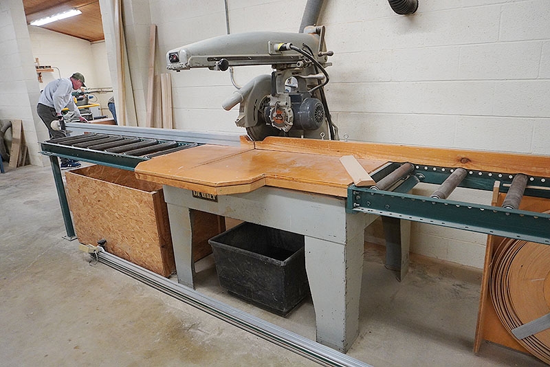 DeWalt Radial Arm Saw w/ Infeed and Outfeed Roller Conveyor and ProScale Digital Readouts