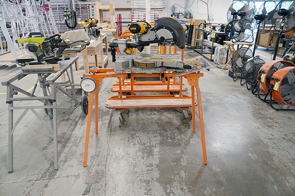 Lot #75 - Hitachi (10") Compound Miter Saw with Work Table Cart and Packing Corner Inventory