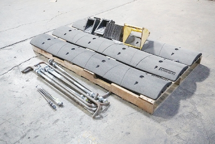 Lot #145 - Pallet of (3) Rubber Speed Bumps, (2) Wheel Chocks and Misc. Brackets and Pipes