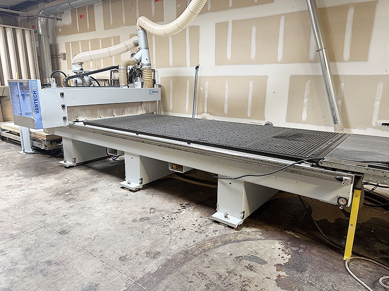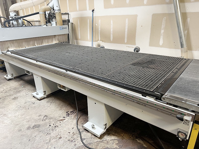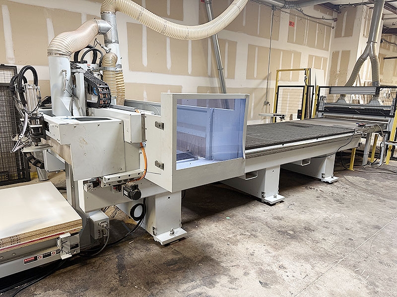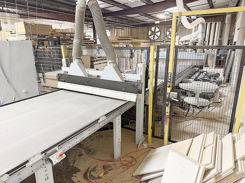 Includes 13.5ft long outfeed belt conveyor w/ 61" wide belt and over arm dust extraction hood