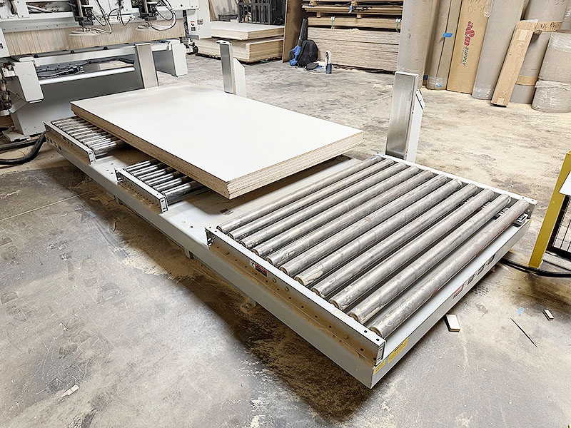 Infeed system includes 5000lbs Scissor Lift Table w/ Roller Top.