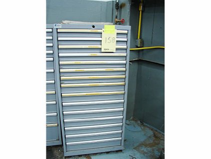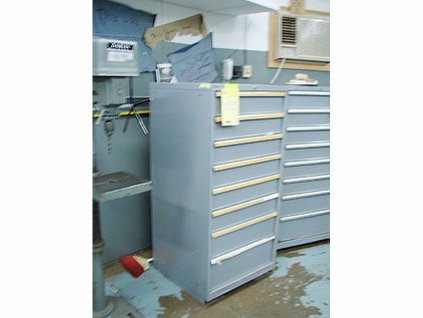 Lot #158 - Lot Of High Speed Corrugated Knives, Files, Dowel Boring Bits, Insert Tooling & Lista Cabinet