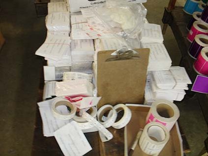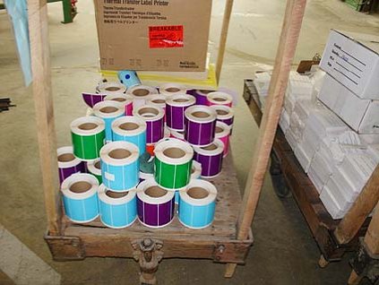 Lot #412 - Factory Truck & Blue, Green, Pink & Purple Sticky Back Shipping Stickers