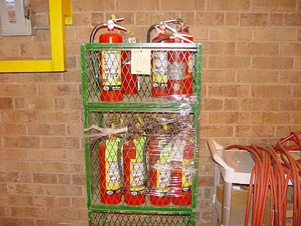 Lot #418 - Lot of Fire Extinguishers w/ Cabinet