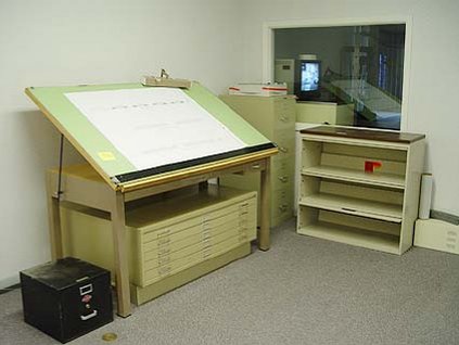 Lot #930 - Drafting Table & (3) File Cabinets