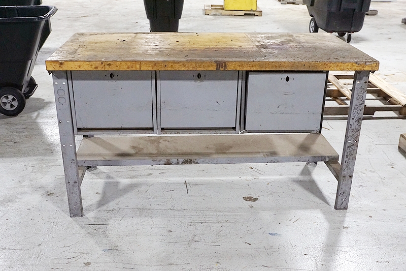 Lot #414 - ULINE STEEL SHOP TABLE AND CONTENTS