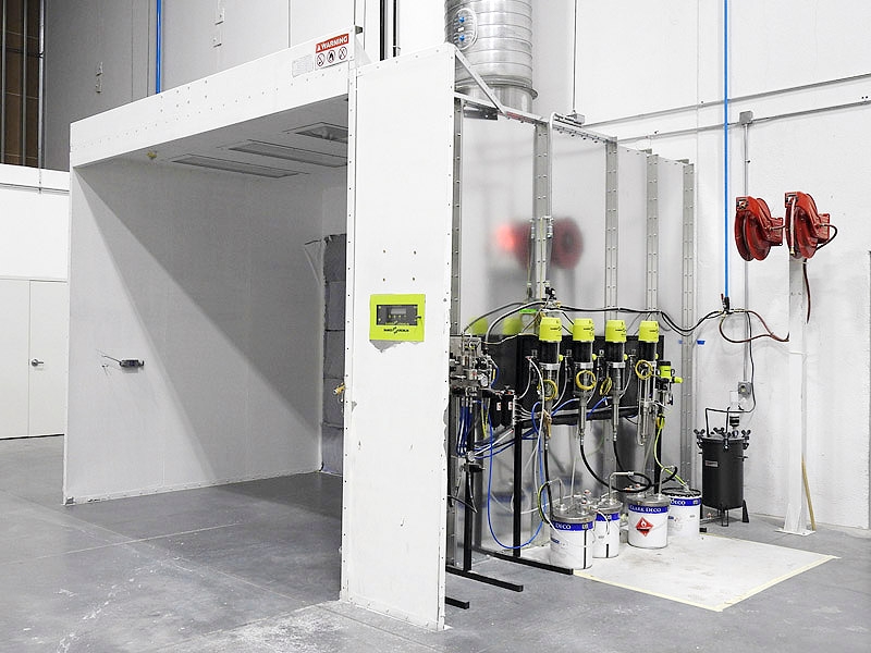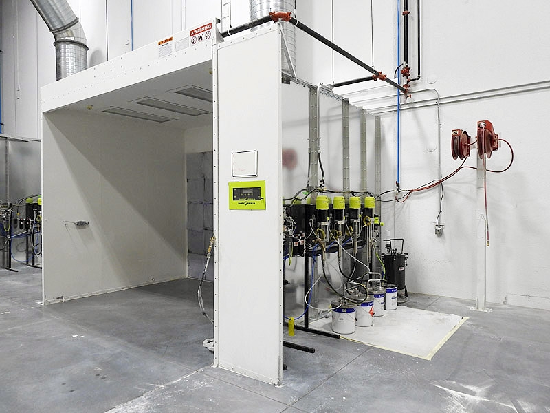Lot #35 - GLOBAL FINISHING SOLUTIONS SPRAY BOOTH (2018) W/ (5) SAMES KREMLIN PUMPS – CYCLOMIX SYSTEM, CA TECHNOLOGIES PRESSURE POT, (3) PNEUMATIC AGITATORS & (2) REELCRAFT HOSE REELS