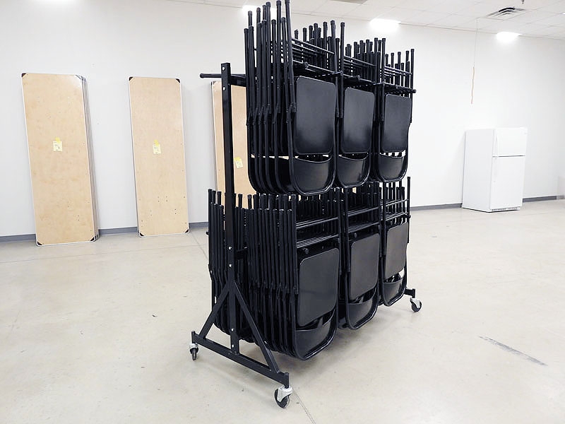 Lot #322 - STEEL ROLLING RACK WITH FOLDING CHAIRS